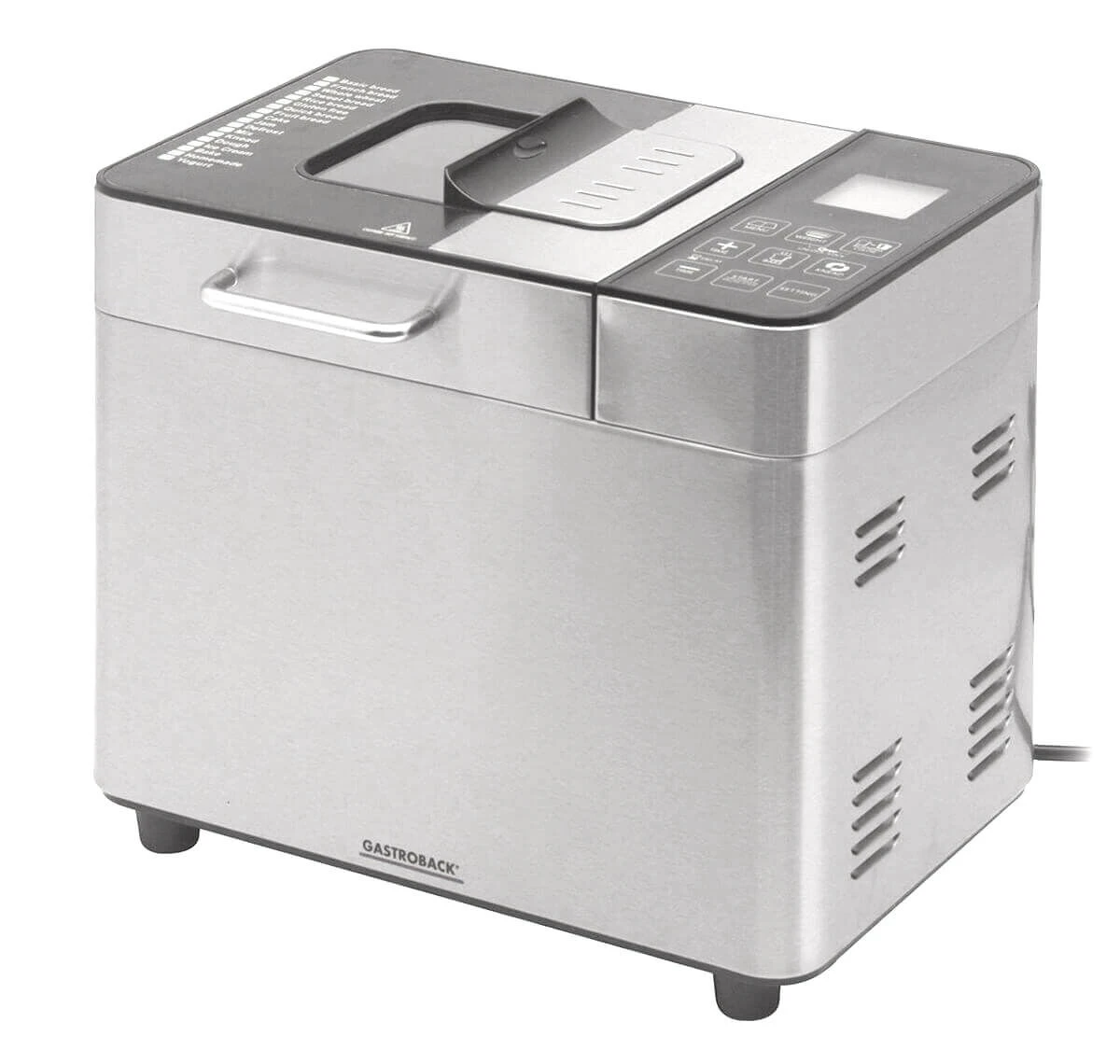 De Gastroback broodbakmachine is vervaardigd uit metaal en voorzien van een uitneembaar bakblik met anti-aanbaklaag. De machine beschikt over 18 programma’s en is te gebruiken voor broden met een gewicht tot 1000 gram. Gebruik de Gastroback broodbakmachine voor het bakken van onder andere witte, volkoren en zoete broden.