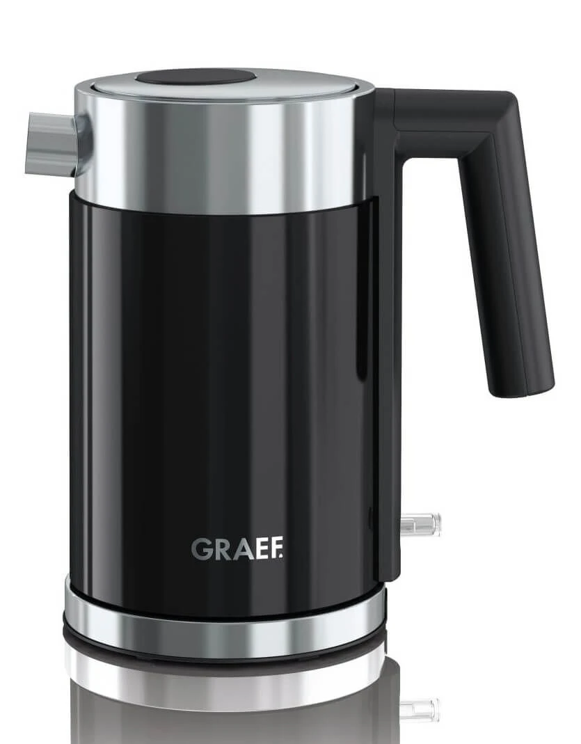 De zwarte glanzende Graef waterkoker heeft een inhoud van 1 liter en is gemakkelijk met een hand te bedienen. De ketel is snoerloos en 360 graden draaibaar op het basisstation. De koker tijdelijk niet in gebruik? Het snoer is gemakkelijk op de bergen in de bodem.