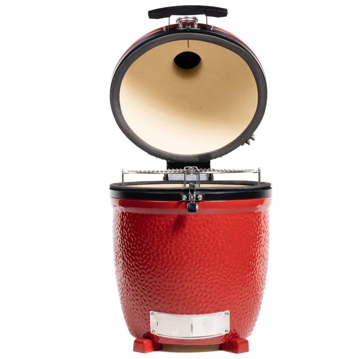 De Kamado Joe Classic III is een kamado die het hele jaar door buiten gebruikt kan worden. De rode, eivormige barbecue is verkrijgbaar in diverse maten en met veel mogelijke accessoires. De warmte in de barbecue wordt goed vastgehouden en verdeeld dankzij de keramische wanden en de unieke vorm van de kamado. De temperatuur kan eenvoudig ingesteld worden op een temperatuur tussen 82°C en 399°C. De buitenzijde van de barbecue blijft relatief koel, externe temperaturen hebben geen invloed op de temperatuur binnen in de Kamado Joe. De temperatuur is eenvoudig af te lezen om de ingebouwde thermometer in de koepel. De pakking van glasvezelgaas, die wel tien keer zo lang meegaat als de gewone, industriële pakkingen, zorgt dat er nog minder warmte verloren gaat. Dankzij de gepatenteerde, regenbestendige Kontrol Tower Top Vent, kunt u de luchttoevoer en daarmee de temperatuur nauwkeurig instellen. Met de meegeleverde, gepatenteerde Hyperbolic Insert, die u onder de barbecue plaatst, zorgt u voor een nog betere warmtecirculatie in de barbecue.