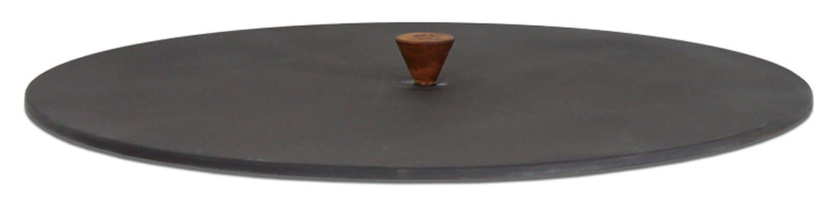 De OFYR deksel heeft een diameter van 85 cm en is gemaakt van zwart gecoat staal. Aan de bovenzijde heeft de deksel een houten knop. Gebruik de deksel voor het beschermen van de gehele kookplaat en de vuurkorf wanneer deze afgekoeld en niet in gebruik is.