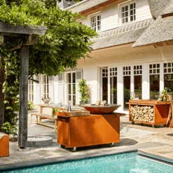 OFYR Island PRO 100-100 Vuurkorf – Barbecue Met Meubel En Plank Van Donkergrijs Keramiek