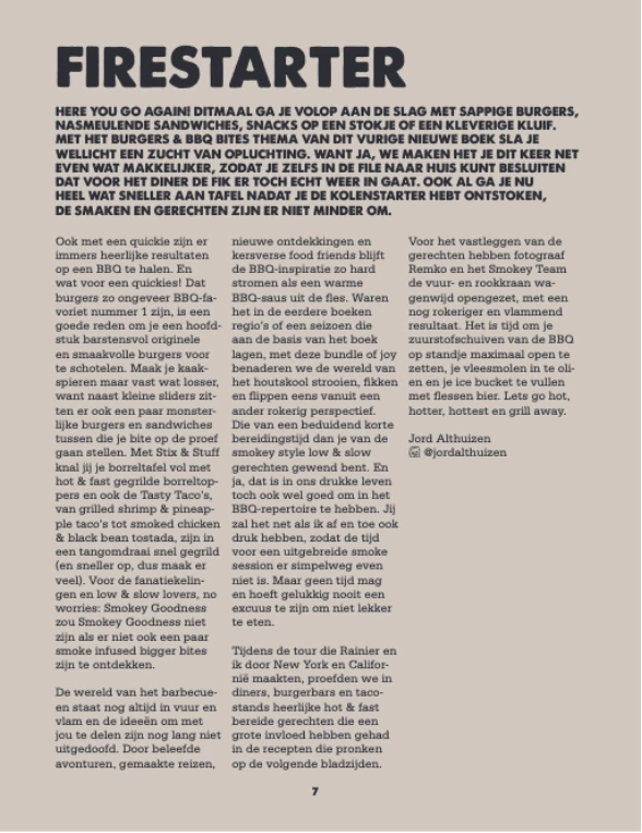 Jord Althuizen is oprichter, eigenaar en pitmaster van BBQ Catering bedrijf Smokey Goodness. Hij schreef meerdere succesvolle ‘Smokey Goodness’ boeken. Smokey Goodness 1 won in 2016 de Kookboek van het jaar vakjuryprijs en Smokey Goodness 2 in 2017 de Kookboek van het jaar publieksprijs.