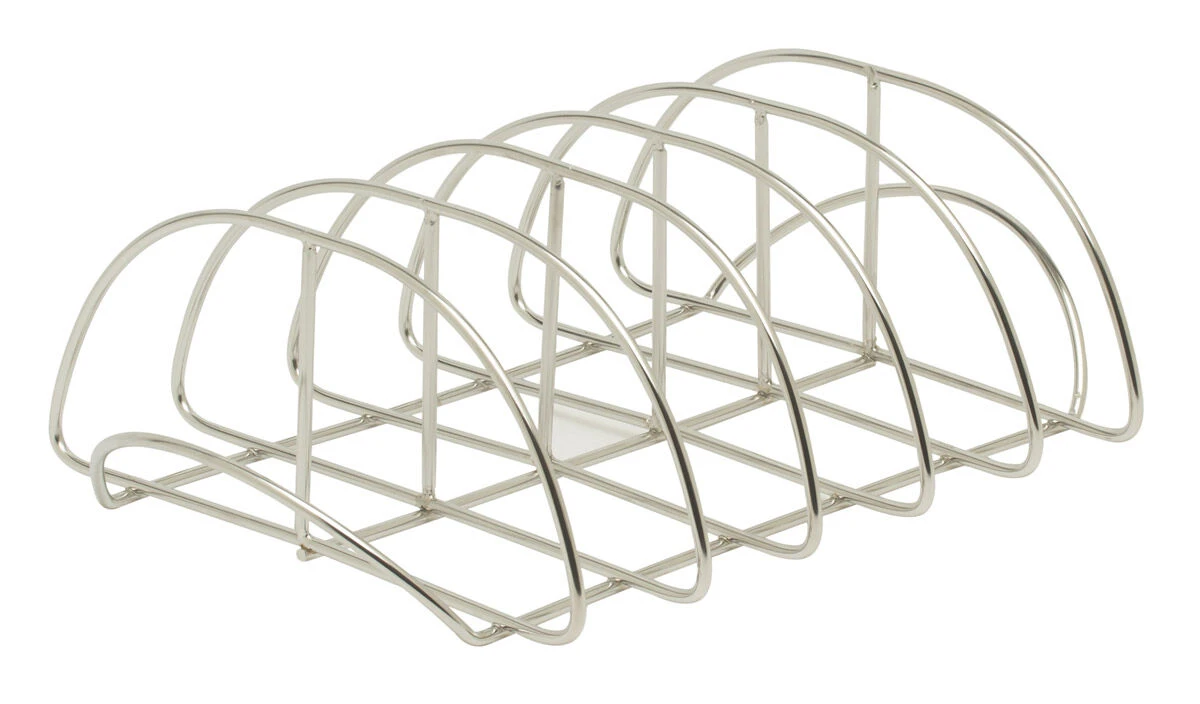 Het roestvrijstalen The Bastard Ribrack Deluxe grillrek gebruikt u voor het maken van de perfecte spareribs. Doordat de lucht genoeg ruimte krijgt om te circuleren, garen uw spareribs perfect gaar.